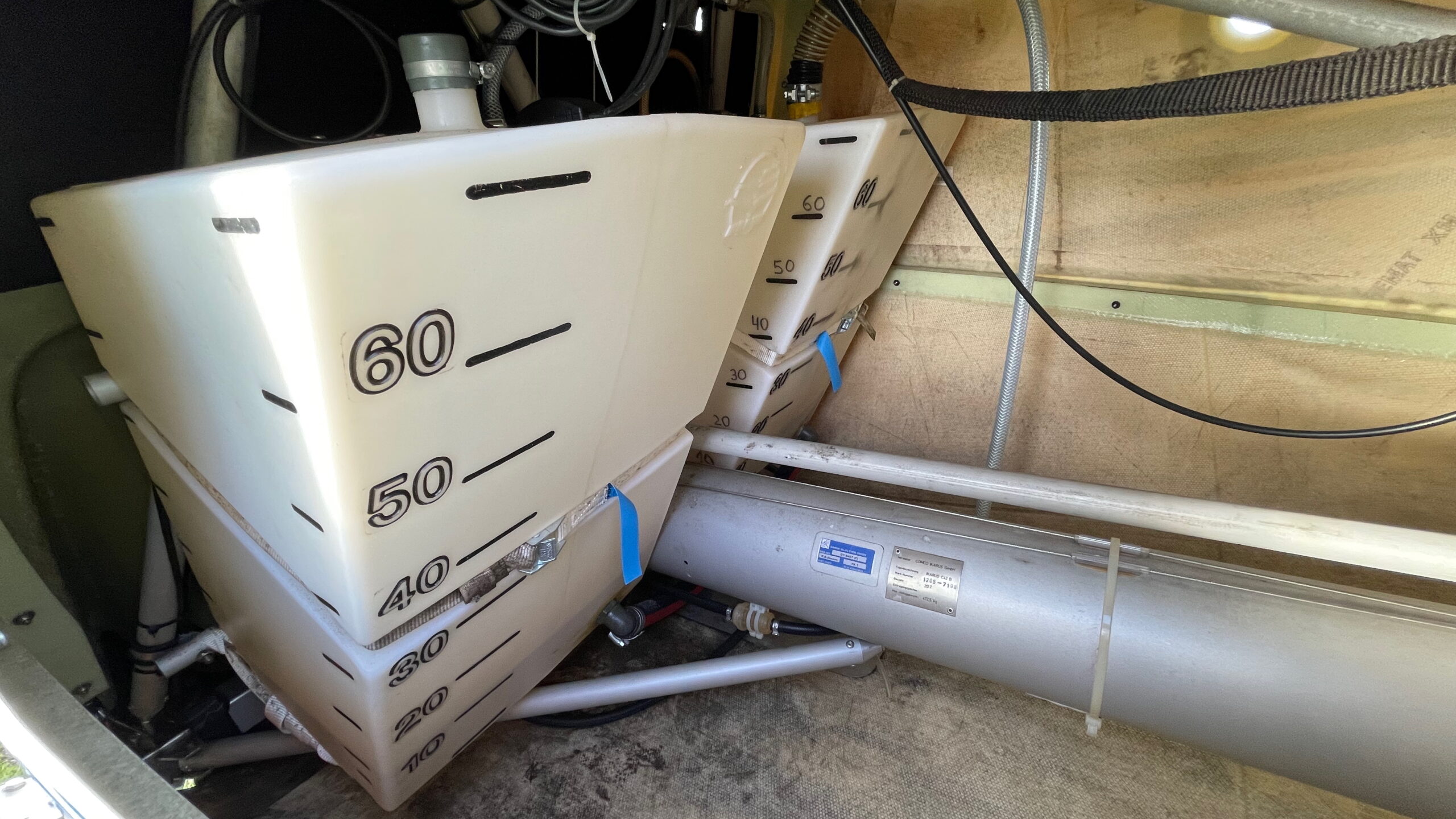 Fuel tanks made of high-density polyethylene (HDPE), a type of durable plastic polymer.